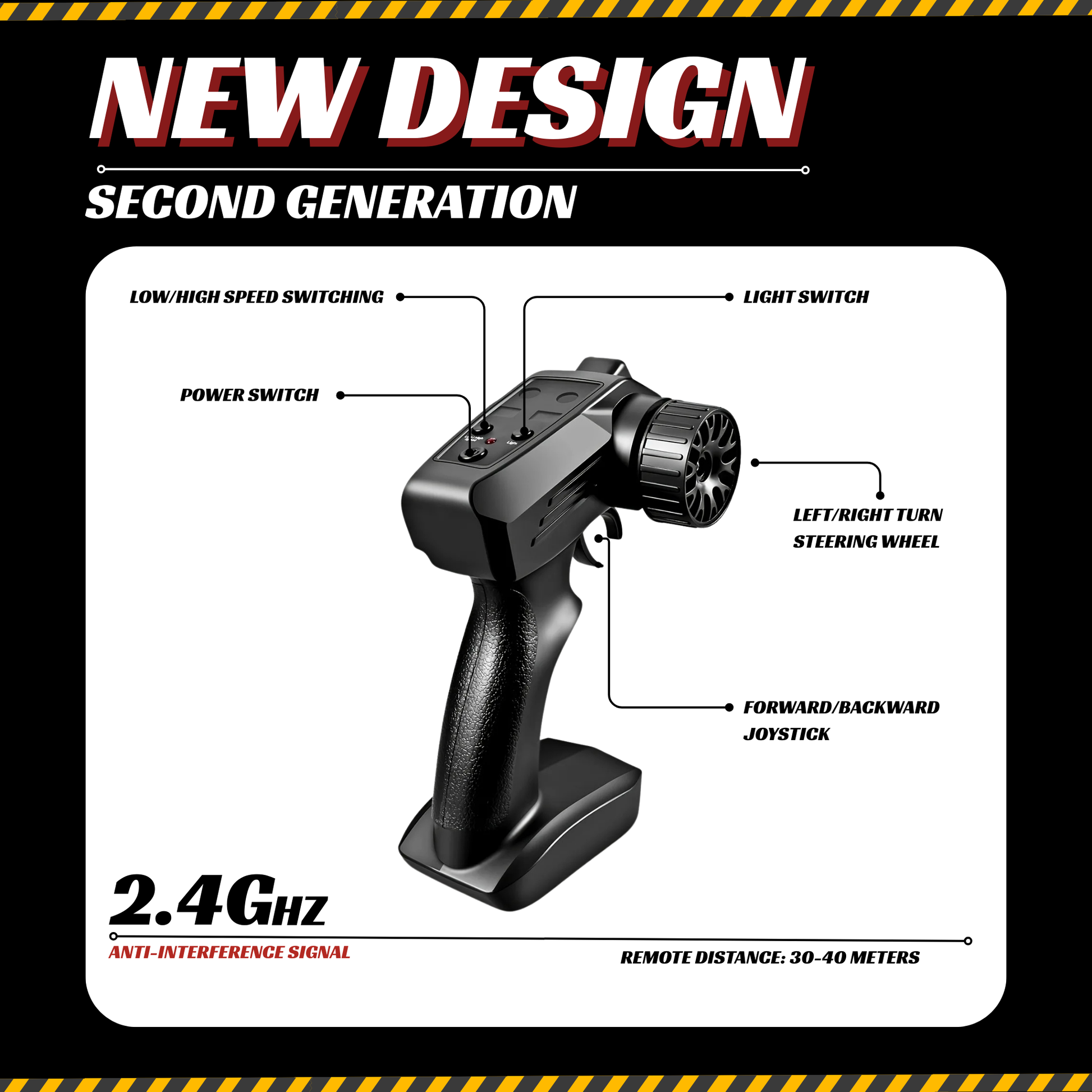 The 2.4G remote control has an approximate range of up to 40 meters (131 feet), providing a stable, interference-free connection so you can enjoy every drift to the fullest.